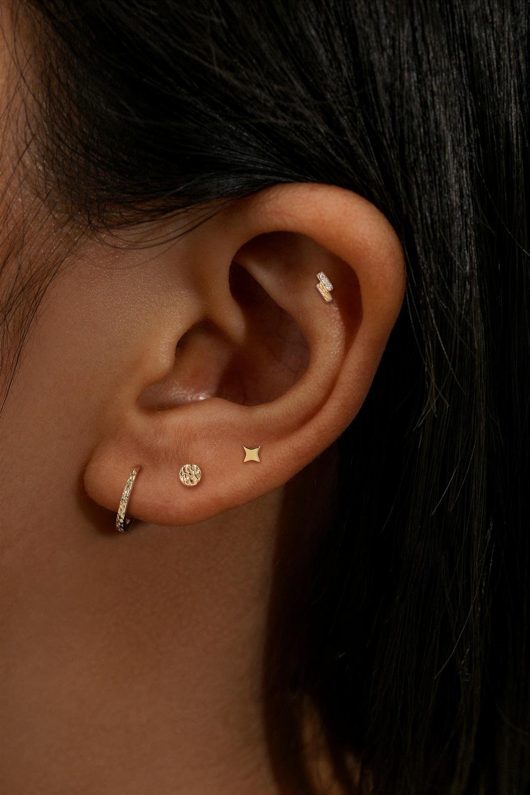 המתכת הינה בצבעים (כסף, ציפוי זהב, ציפוי שחור) מחשש לתכשיטים לא איכותיים אנו לא נותנים שרות החלפת עגילים ולא מבצעים פירסינג עם עגילים שנקנו על-ידי הלקוח.
